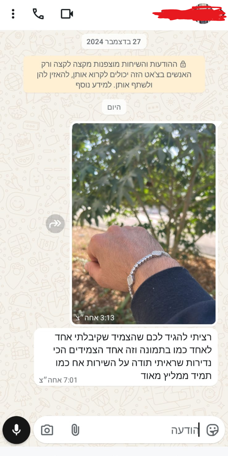 הצמיד מהמם, בול כמו באתר. המשלוח לקח טיפה יותר זמן ממה שכתוב (הגיע אחרי 10 ימים) אבל היה שווה לחכות. השירות לקוחות בוואטסאפ היו מקסימים כשבדקתי מולם. סה"כ חוויה טובה.